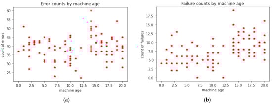 Machine age analysis. (a) Error counts by the machine’s age; (b) failures by the machine’s age.