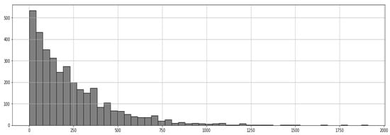 The histogram of elapsed time between errors can be seen in Figure 10. To be visually more illustrative, we have considered classes.