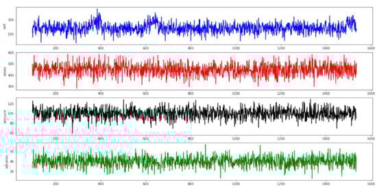 As discussed before, the dataset investigated consisted of a telemetry dataset of various machines. For example, the telemetry data of machine 1, sample 0 are plotted in Figure 11 as follows: