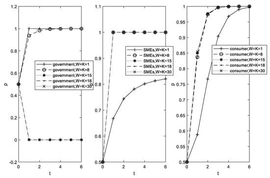 - The effect of government regulatory agencies’ incentive W for SMEs on system evolution