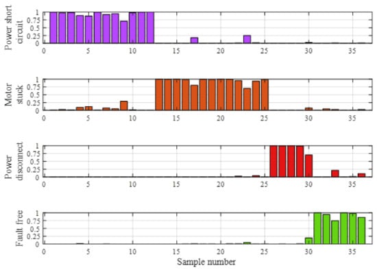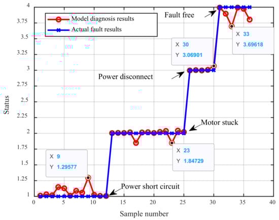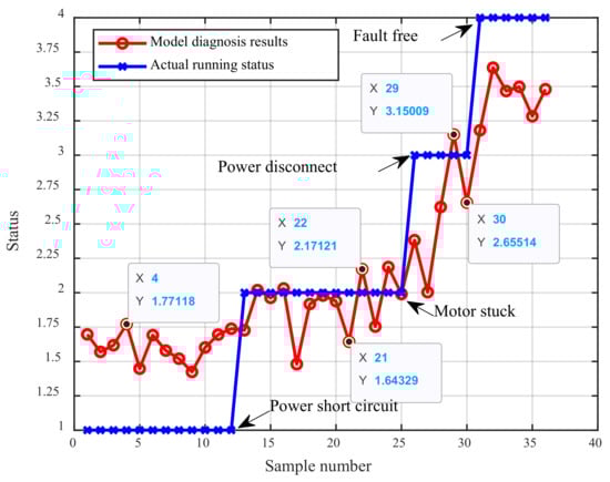 The optimized BRB is verified by using the data of the test set, and the fault diagnosis results of the operation of the asynchronous motor are obtained, as shown in Figure 10.