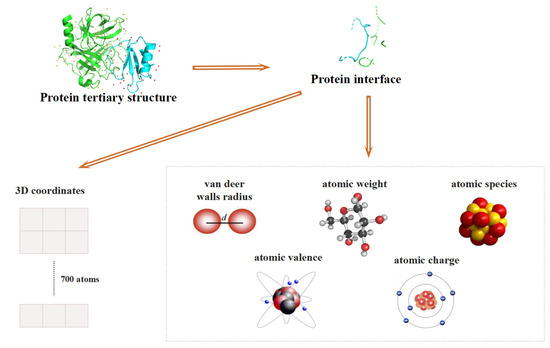 Data preprocessing. Protein interface was extracted because it is the most distinctive and informative region. Then, the interface was converted into point cloud format including spatial coordinates, van der Waals radius, atomic weight, atomic type, atomic valence, atomic charge and atomic chain.