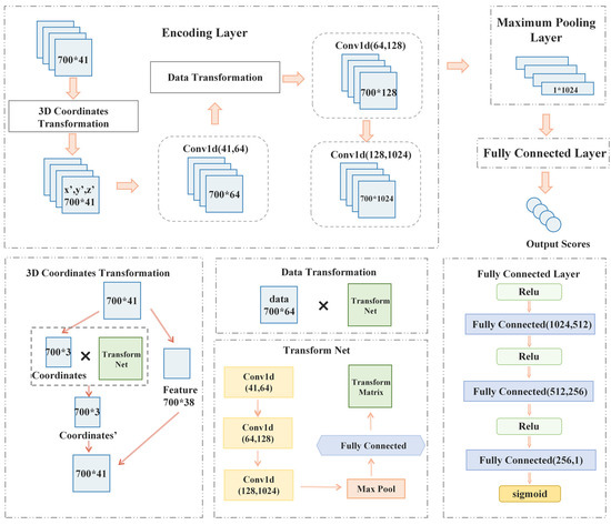 Our deep learning architecture was built based on PointNet [32]. It contains three modules, i.e., an encoder, a maximum pooler and a classification head.