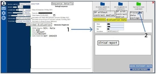 Interface of the doctor user for editing the patient data (1) and accessing the processed data (2).