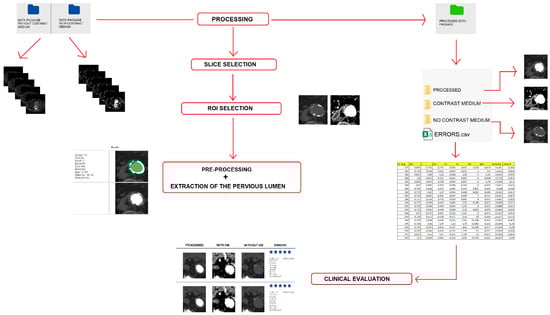 The process related to the procedure and phases of the processing of the CT sequences is illustrated in Figure 12 and is organized as follows: