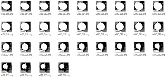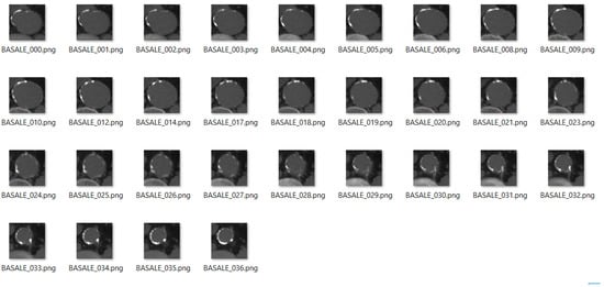 We specify that the slices which do not include the aneurysmal area have been excluded, together with those ones that present some artifacts that would not have been useful from a clinical point of view and would have otherwise affected the outcome of the algorithm.