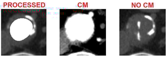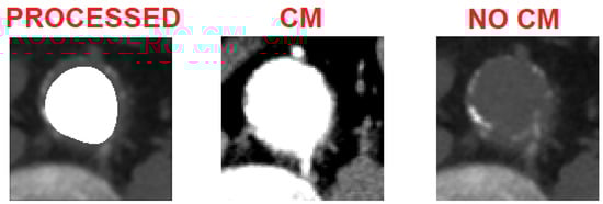 Furthermore, it must be considered that the case under examination is particularly interesting, since the lumen of the aortic vessel is completely patent, as visible from the CT images with contrast medium (Figure 17), and, this being an unusual case, it is important for testing the mathematical algorithm.