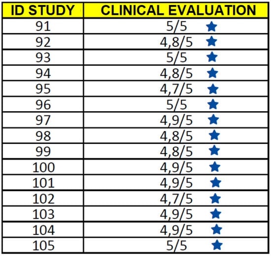 Average of the clinical evaluations (e.g., in terms of stars) on the slices of the CT sequence of each patient.