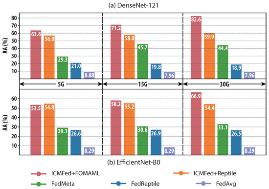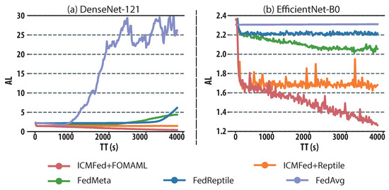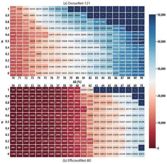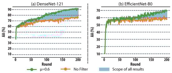 - Model Selection. To fairly evaluate the methods, DenseNet-121 and EfficientNet-B0 are selected to perform the experiments. These are chosen because they are classic and widely used models, and can achieve state-of-the-art performance in computer vision with a representative and indicative value [49,50]. They are also widely used in other works as testing models [51,52,53].