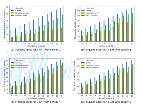 The last parameter analysed is the maximum number of qubits used in circuit; this is the maximum number of qubits used along all Grover’s bounded algorithm circuits that are executed.