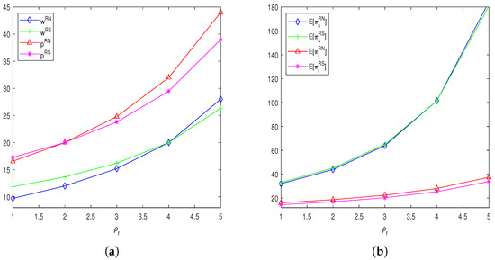 We analyse this game model backward. We first solve the retailer’s optimization problem and obtain the optimal fresh-keeping effort level f R S and retail price p R S ; then by substituting f R S and p R S into the supplier’s profit to solve the optimization problem, we derive the optimal wholesale price ω R S . The optimal decisions and expected profits of the two parties in equilibrium under the RS case are shown in the fourth column of Table 3.