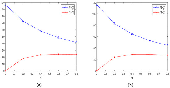 Theorem 1 suggests that the freshness-keeping effort level can be higher in equilibrium as the retailer’s private forecasting accuracy m increases (also viewed as an increase in the expected market potential T). The whole supply chain in the centralized mode is better off having a higher forecasting accuracy (m) or a larger freshness-keeping efficiency ( ρ s c < 2 ). The key driver of these results is that having more accurate market demand information for fresh agri-products gives the supply chain the incentive to invest more in the freshness-keeping effort, thus capturing a greater consumer demand; conversely, having a higher freshness-keeping efficiency gives the supply chain more autonomy to charge a higher retail price. The combination of the above two aspects increases the whole supply chain’s expected profit in equilibrium, while an increase in ρ s c (<2) always improves operational efficiency, but can lead to a pricing disadvantage because of the higher retail price in equilibrium. Hence, the benefit of having high freshness-keeping efficiency in the centralized mode may be dominated by the loss derived from the large-scale demand decline as the retail price increases too much (i.e., ρ s c 2 ).