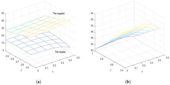 The results in Proposition 1 illustrate the effects of the retailer’s information sharing strategy on the optimal freshness effort level of the freshness-keeping effort party (the supplier or retailer) under certain conditions related to the expected market potential (captured by T). An overestimated market potential ( T > a 0 ) encourages the supplier taking on the freshness-keeping effort to increase investment into freshness-keeping technologies, hence maintaining a higher freshness-keeping level if they have access to the retailer’s forecasting information. However, only an underestimated market potential ( T < a 0 ) can induce the retailer taking on the freshness-keeping effort to share their private forecasting information while paying more to maintain the freshness of the agri-products. This suggests that a lower forecast in the market potential weakens the retailer’s private information advantage, such that the retailer is willing to share their information with the supplier in order to obtain a lower wholesale price, even if a higher freshness-keeping level needs to be maintained.