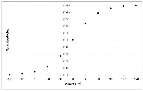Therefore, a technique that we name “focused normalization” can be used, which warps the longitudinal coordinate space in order to provide more details about the short-distance agents and fewer details about the long-distance ones (Figure 6).