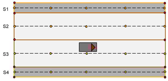 - S4 (parking lane): [1] [0 1 0] [5 −20 0 0] … [5 20 0 0] [4 −20] … [4 20].