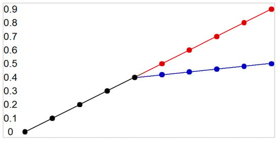 An idea for a faster prediction of future trajectories for different traffic participants is to reduce the number of predicted points and to interpolate the values in order to obtain the entire trajectory. This can be observed in Figure 18.