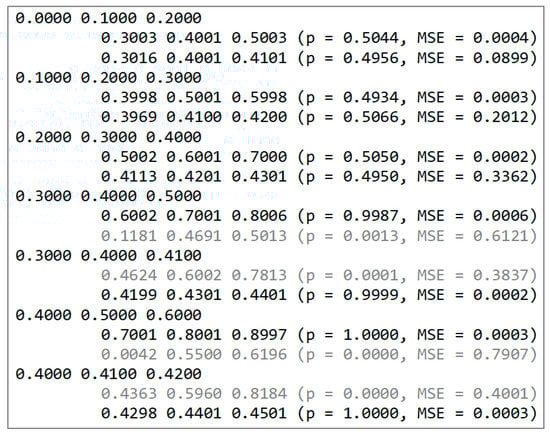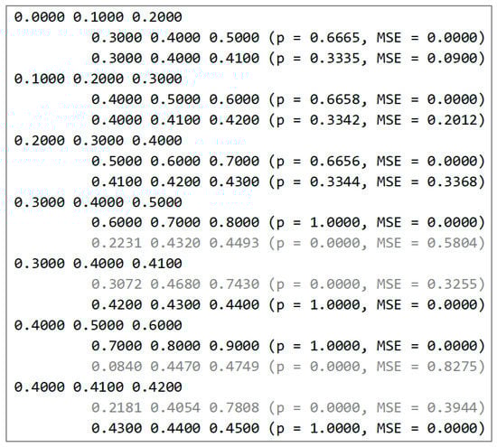 On the one hand, L2 tries to decrease the MSE, that is, to bring the predicted trajectory closer to the desired trajectory for that mode. On the other hand, it tries to increase the probability of the best mode. If the probability of one mode increases, the probabilities of the other modes automatically decrease. This second term of the L2 loss function is actually a form of cross-entropy loss. Ideally, the best mode should match the current instance perfectly, and, therefore, its target value for the probability is 1, so the second term in Equation (3) is actually . The other modes should not predict the instance, and so their target values for the probability are 0, which cancel the terms . The term ei imposes that the best mode becomes even closer to the desired trajectory of the current instance.