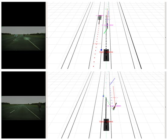 In Figure 20, one can see some results from the real vehicle that include the planned trajectory of the ego vehicle and the predicted trajectory of the other agents.