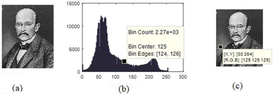To show the limits of fuzzy and probabilistic approaches on real data, we have used these methods to compress images and we have conducted a deep analysis of the obtained results. For this, we have used the image of the great scientist Max Planck (see Figure 2a). The histogram of this image is given in Figure 2b, while Figure 2c highlights an ambiguous pixel.