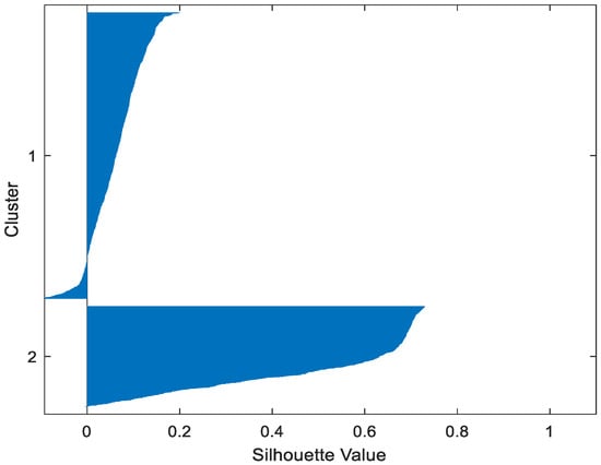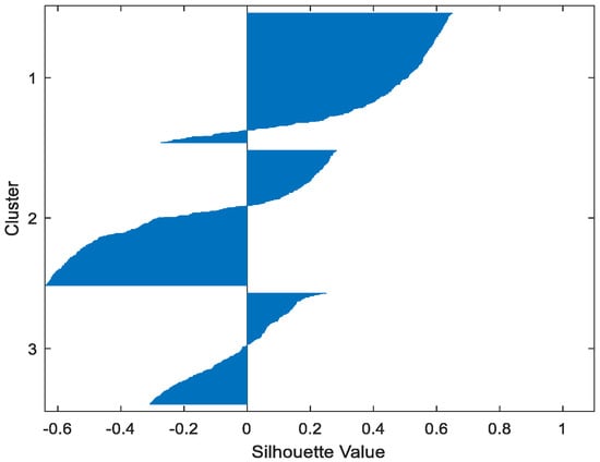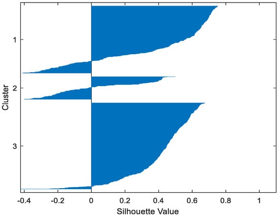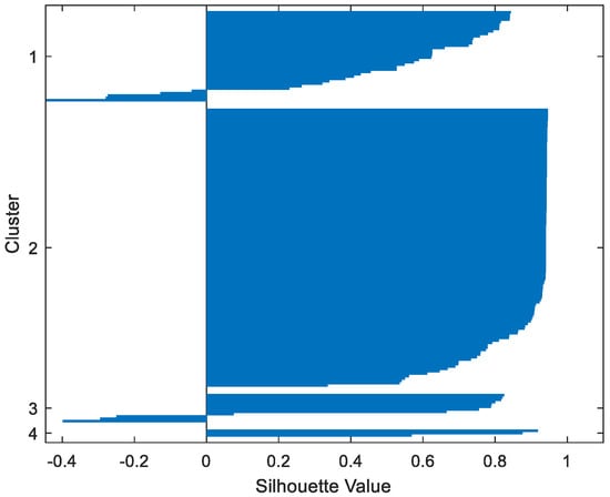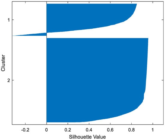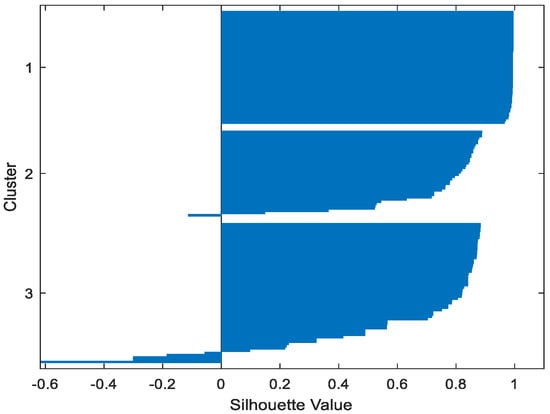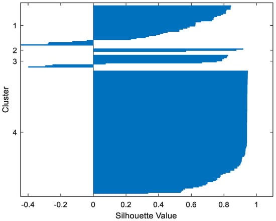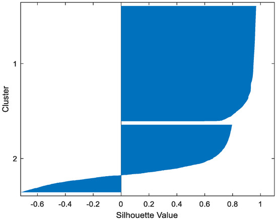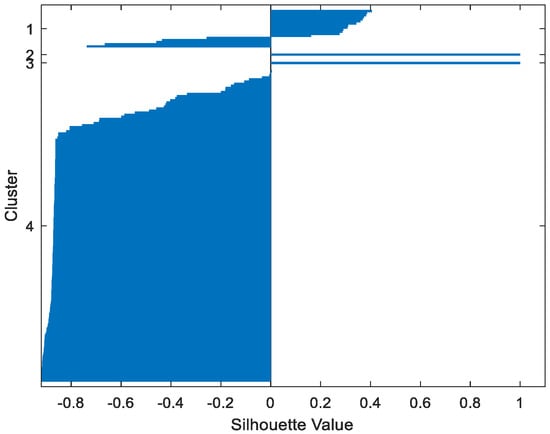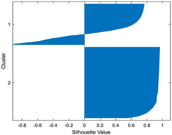 - Let N be the number of patterns. The Silhouette index [43] finds the optimal clustering effect using the difference between the average distance within the cluster and the minimum distance between the clusters, i.e., the silhouette coefficient is given as follows: