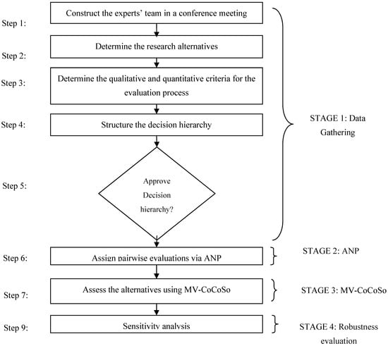 By integrating three famous MCDM methods (WASPAS, SAW, and MEW), Yazdani et al. introduced a combined compromise solution (CoCoSo) as a MCDM technique to evaluate the desired options [57]. Recently, CoCoSo was utilized to assess the 5G industry in a fuzzy environment [58], transportation company selection [59], analysis of failure modes in wind turbines [60], and the selection and evaluation of industrial robots for the automobile manufacturing industry in a fuzzy environment based on Bonferroni functions [61]. Moreover, Lai et al. developed a revised CoCoSo model that maximizes global and local differences between alternatives while avoiding inconsistency in prioritization using a maximum variance optimization model [62].