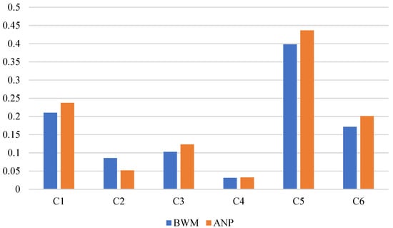 In the above equations, CI, RI, and CR represent the consistency index, randomness index, and consistency rate, respectively. The compatibility of the paired matrix is checked with the compatibility index (CI). For acceptable consistency, the CI should be smaller than 0.10 [56].