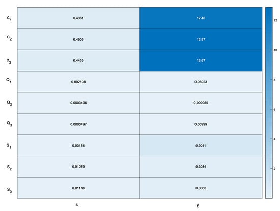 The sensitivities are normalized by dividing them by the nominal values of the inputs. This step provides a relative measure of the sensitivity that is independent of the magnitude of the inputs. To write the sensitivity indices given in (13) in a compact way, the mean of absolute values of is calculated as