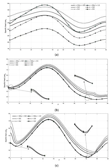 (a) Specific Heat Loss1 for different angle of incidence; (b) Specific Heat Loss2 for different angle of incidence; (c) Specific Heat Loss3 for different angle of incidence.