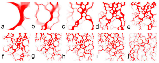 In light of this, the lattice Boltzmann method (LBM) was created. In the field of porous media seepage, it was first proposed by McNamara et al. [13] and quickly developed due to its advantage of easy implementation and parallel computing [14,15,16]. Many researchers have used LBM with better success to simulate and study the mesoscopic seepage characteristics of porous media [17,18,19,20]. The premise of the SRM’s permeability study is also the construction of the SRM model. At the moment, scanning electron microscopy (SEM) and random generation are the two techniques most frequently used. Additionally, by adjusting the pertinent key parameters, the random generation method can create the necessary SRM model. Its models have unique shapes that resemble the actual SRM [12]. To simulate the seepage process within the SRM, it can easily be combined with LBM.