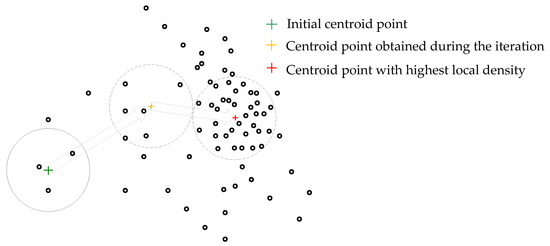 Then, the local mean moves iteratively towards the sample density concentration area, and the density center point is represented as follows: