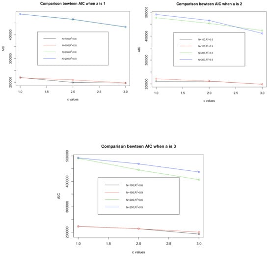 The following are recommendations for future studies. One area of further investigation is the effect of different time structures. In this study, a linear form for simulation was considered; however, other forms of , such as or could be explored. A relative improvement in AIC due to the use of these complex structures would be anticipated. For instance, it would be expected to have a minimal AIC associated with in comparison to AIC for .