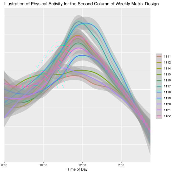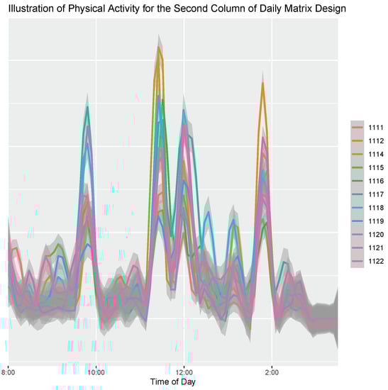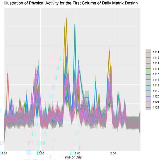 So, the interest of the Active Schools Institute has been addressed through the proposed model. The proposed model concluded that the time structure of weekly activity was linear, but for daily activity was cubic. This conclusion was reasonable because the general patterns of movement throughout the day had more fluctuations than weekly movement. The weekly movements showed more smoothed patterns. Also, several dips in data points around the sedentary category for daily movement were observed. However, for weekly movement, it appeared this sedentary behavior was changed (i.e., it is needed to consider two separate definitions for sedentary behavior for weekly and daily activities). This analysis also gives us a slightly better sense of how movement intensity changes over time for both time scales.