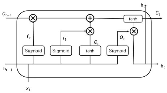 Hochreiter and Schmidhuber first proposed Long Short-Term Memory networks (LSTM) in 1997 as a Recurrent Neural Network (RNN) variant [10]. Compared with the traditional RNN, LSTM neural network presents the characteristics suitable for processing and predicting important events with long intervals and delays in time series [24]. LSTM improves the hidden layer structure of RNN by introducing a system of gating units composed of input gates, forgetting gates, and output gates, which effectively alleviates the gradient disappearance and gradient explosion problems in model training. The structure is shown in Figure 1. Among them, the forgetting gate is used to decide which information needs to be removed from the neuron in the model, the input gate is used to update the unit state, and the output gate is used to control the output to the next moment of the neuron [25].