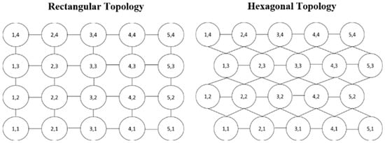 In this section, a single-layer 2D grid is utilized as the weights that are assigned according to the datasets. Generally, SOM weights could be assigned as either a rectangular or hexagonal topology, as shown in Figure 1.