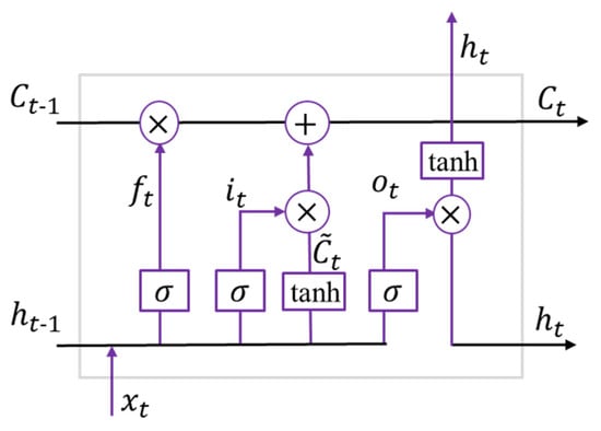 Long short-term memory is a popular type of neural network that is designed to capture temporal relationships within sequential data. It is composed of memory units that accumulate historical information through self-connections. Each memory unit consists of three gates: the input gate, the forget gate, and the output gate, as shown in Figure 2. The input gate controls the information flow into the memory unit, while the forget gate and output gate regulate the information flow within the memory unit. The details are listed as follows:
