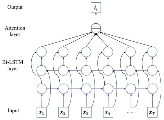 where represents the output of Bi-LSTM and represent the learnable parameters. This produces a weight value , which is then normalized through the softmax function. Then, the corresponding values are multiplied by their weights and the sum is taken to generate the output: