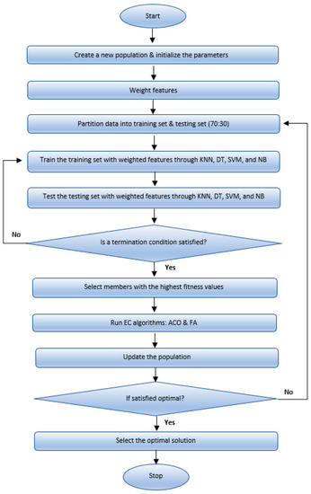 - Abd-Alsabour, N. Investigating the effect of fixing the subset length on the performance of ant colony optimization for feature selection for supervised learning. Comput. Electr. Eng. 2015, 45, 1–9. [Google Scholar] [CrossRef]