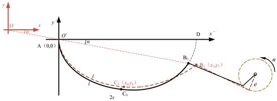 Figure 1 shows the schematic diagram of the inclined catenary model. In it, arc AD is a catenary curve representing the screen in its horizontal position, arc AB0 represents the screen in its inclined position at any moment, and arc AB1 represents the screen at the next moment. Point A is set to be fixed, and Point B moves left and right. The incline angle is α, n is the rotation speed and e is the eccentricity.