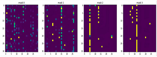 Figure 4 illustrates which features are chosen between the first and fourth decision steps. The brighter color indicates that the feature is given more weight in this decision step. Figure 4 also demonstrates that each decision step will assign a unique weight to each feature, reflecting the instance-wise idea. For instance, in the first decision step, denoted as mask 0, the top three features (features 1, 16, and 8) received high scores, but the noise from other irrelevant features was also captured. The second decision step, denoted by mask 1, was more beneficial because it emphasized the important features while assigning zero weight to irrelevant features. In the subsequent step, as depicted by masks 2 and 3, the noise features were nearly eliminated, and only the essential features were displayed. The internal mask is a fundamental component of TabNet, and it is easy to use and obtain. Compared to other benchmark models that perform similarly in this study, TabNet outperformed them in offering comprehensive model insights without the need for extra software.