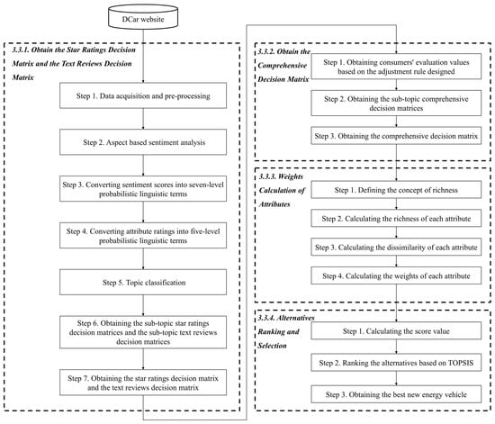 Step 6. Obtain the sub-topic star rating decision matrices and the sub-topic text review decision matrices.