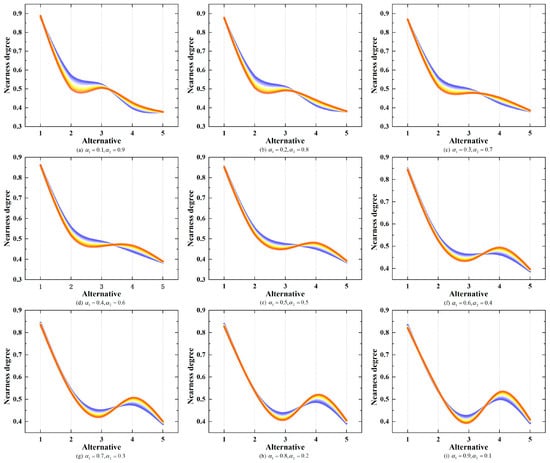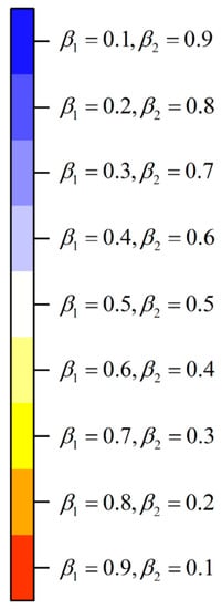 Among the two attributes above, the consumers’ evaluation of attribute 1 focuses on average and good, while the consumers’ evaluation of attribute 2 is diverse, the probability values of different linguistic terms are closer, and the evaluation value for attribute 2 contains richer information. Attribute 2 should be assigned a larger weight because different consumers have rich and diverse feelings about attribute 2, which brings a greater influence on the selection of products.