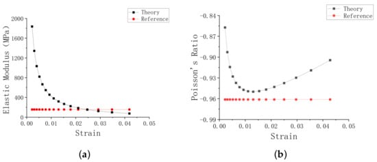 Comparison of this paper and literature. (a) Young’s modulus, (b) Poisson’s ratio.