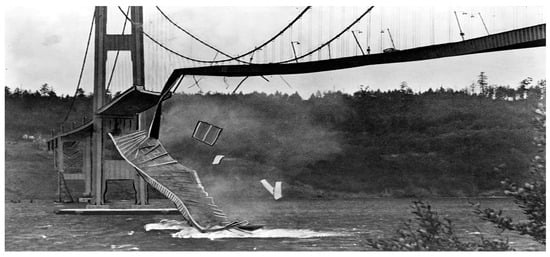 Collapse of Tacoma Narrows Bridge (1940) (Source: Wikipedia).
