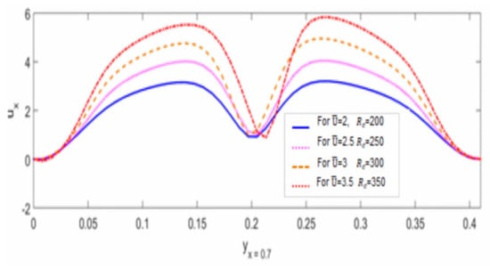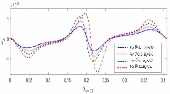 In this paper, the combined effect of linearly increasing Reynolds number and mean inflow velocity on flow velocity fields with mesh independence analysis has been studied by employing a monolithic Eulerian formulation to Cosserat fluid–structure interaction (CFSI) problems at a micro-structural level in a non-classical framework. The governing mathematical modeling of the CFSI problem has been derived using underlying laws of continuum mechanics. The results of the present study have been obtained by computing a prominent classical FSI benchmark test FLUSTRUK-FSI-3* with FreeFEM++ software. This benchmark test was validated by comparing the results with classical solutions present in the literature. The frequency and the amplitude of oscillations with a mesh of vertices and a uniform time-step size of validated the benchmark test in a non-classical framework. The results obtained indicated that a uniform linear increase in Reynolds number and mean inflow velocity produced a significant combined micro-structural effect on the micro-rotation velocity field , and a direct relation was found between the micro-rotational effect and both parameters. Moreover, this combined effect of increasing and on the velocity field has also been observed as very significant in the sense that horizontal and vertical flow velocity profiles experienced great variation by maintaining the same pattern on each increasing value of and at any particular location in the computational domain. Furthermore, the mesh independence analysis has been employed to verify the convergence of all results and demonstrated for flow velocity fields in a non-classical framework. The results converged nicely on employing the mesh independence analysis, which enhanced the desired accuracy of the obtained results and strengthened the governing modeling of the proposed CFSI problem. Further, the validation of the classical benchmark test made the results very significant and robust for the analysis of the micro-structural characteristics of fluid flow, especially using mesh independence analysis to ensure the desired accuracy of the obtained results. However, the implementation of algorithmic description requires enhanced computational resources to achieve the desired accuracy of results due to three additional micro-rotational degrees of freedom (dof), which makes the CFSI model very complex. Finally, the present study can be extended further for the analysis of the effects of micro-viscosity parameters on flow velocity fields for such coupling problems in a non-classical framework.