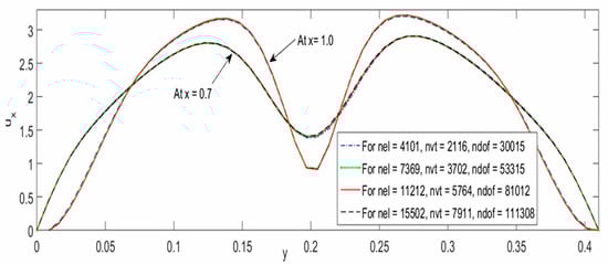 Finally, a list of the number of elements, number of vertices, and number of degrees of freedom used for obtaining the flow velocity profiles against the mesh independence analysis are summarized in Table 5.