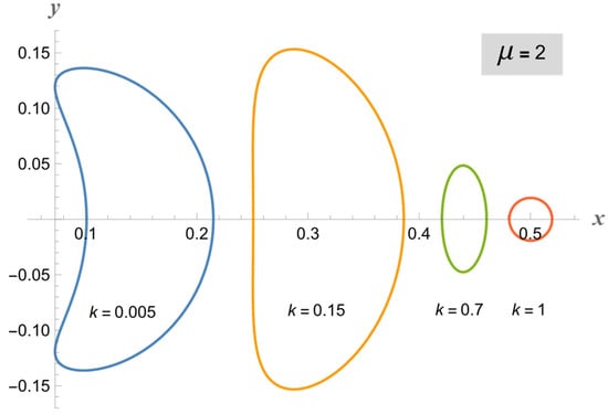 The coordinate transformation (5)–(10) can generate a wide range of distinct geometries by adjusting the parameter . When approaches 0, the geometric shape given by the parametric curve at constant and tends to the bipolar (standard toroidal) form, regardless of (Figure 1).