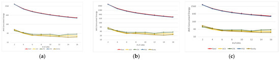 Average consumed energy in different settings: (a) simple severity (3 × 10 defects); (b) average se-verity (9 × 20 defects); (c) advanced severity (27 × 30 defects).