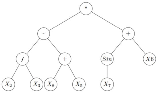 When using genetic programming in symbolic regression (GP-SR), programs are mathematical formulas that can be represented using sparse trees. Figure 2 shows the tree that represents .
