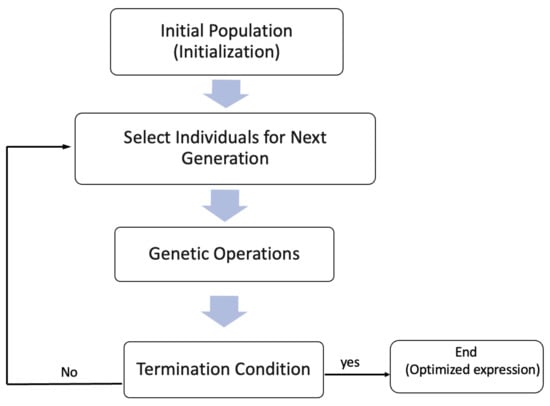 These operators will be utilized by the probabilities we specified in advance. The evolution procedure will stop if at least one formula in the evolution has the fitness reaching the threshold we pre-specified or the evolution has reached the maximum number of generations we pre-specified. The whole procedure is illustrated in the flowchart in Figure 7 below: