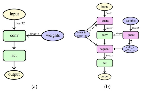 For the QNN model training, we propose our module, which is used instead of a convolutional layer (see Figure 1). The module consists of input quantization, weights quantization, convolution, and dequantization submodules.